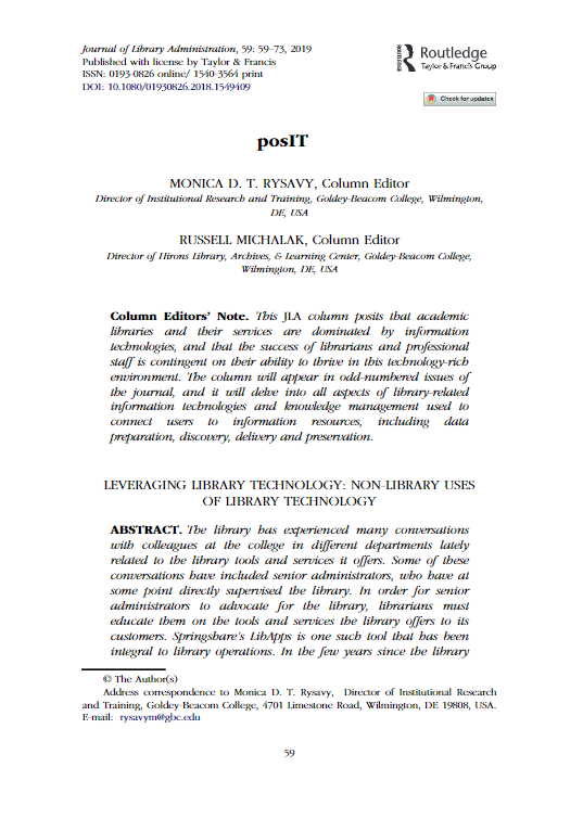 Michalak, R., & Rysavy, M. (2018). Twelve years later: Comparing international business students’ use of physical and electronic library services in 2004 and 2016. Reference Services Review, 46(1), 42-68. here